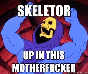 My loss left the gates of Castle Grayskull slightly ajar and the mighty Skeletor kicked that sumbitch wide open with a 120.04 – 102.74 triumph over Alex, vaulting the Evil Empire into first place. Upon seizing control of the league, Skeletor first had his way with The Wiz’s remains…