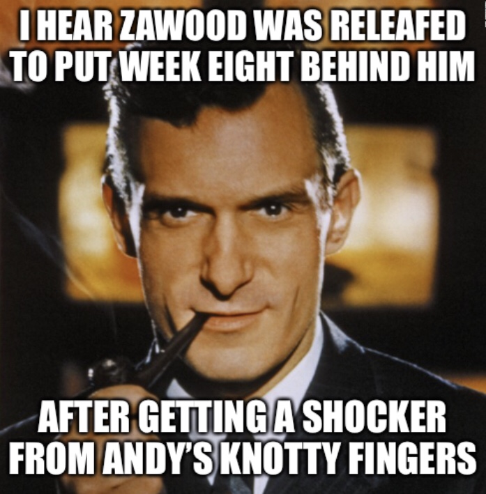 As ugly as that matchup was, numerous other games were even worse. Let’s start with the league’s Cinderella story in 2021: The Urban Achievers. Much praise has been heaped upon Redman for his shrewd drafting of young, up-and-coming stars. The experiment worked so well for the first seven weeks and then…? Well, then he came up against preseason favorite Science Walrus and got his ass whooped 123.46 – 82.54. So much hype, so much time on my knees building him up, so much jibber-jabber in the chat, only to have the league darling exposed for what he is.