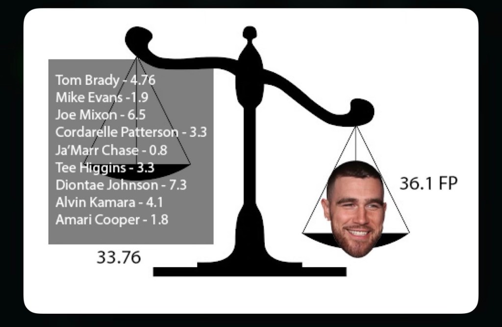 Hunter Renfrow played in the first matchup, but was held to only 4.7 points. No bueno, but hey, Justin Jefferson was still to come! What if I told you in advance he scored a touchdown almost immediately, and he finished with 10 — count ‘em, 10! — targets? Surely The Analrapists got a paltry 14 points when all that happened, right?!