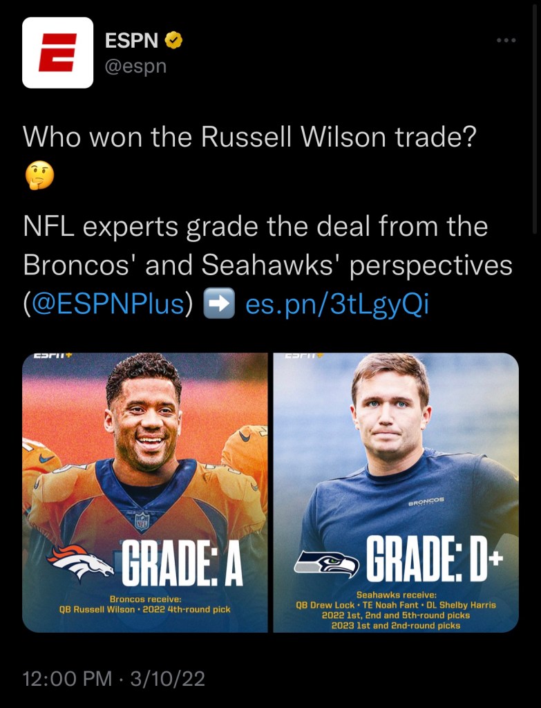 This trade wasn’t quite to Herschel Walker standards, but I’ll be damned if it’s not right up there. And, the even greater issue facing Denver is that they’re completely stuck with Wilson for at least a couple more years. Check out the numbers if they decide to move along from him!